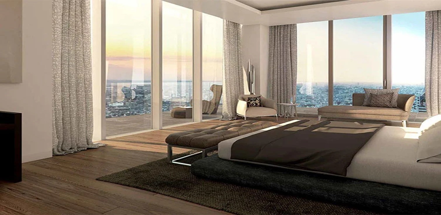 4 BHK Duplex Apartments feature 22-ft ceilings and floor-to-ceiling windows, with a glass facade, signature to Trump style.